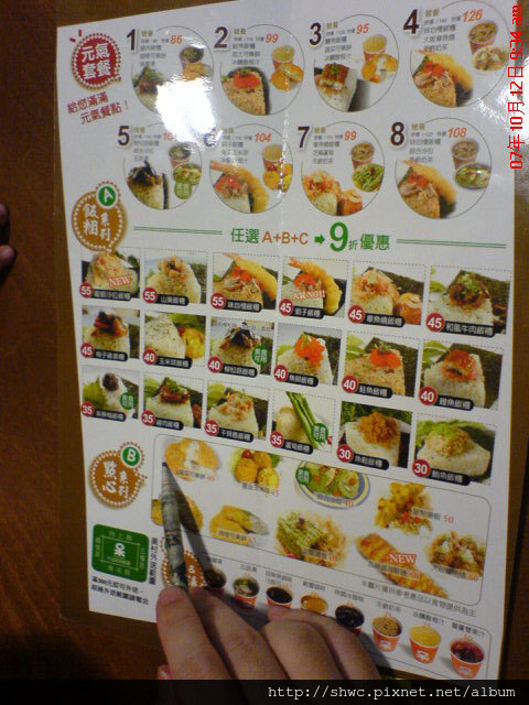菜單上有很多種飯團口味供選擇,你可以選擇單點或是套餐。