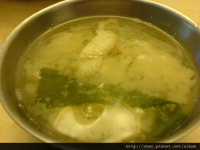 等到材料滾後,最後加入猴頭菇及海帶芽滾一下即可起鍋。