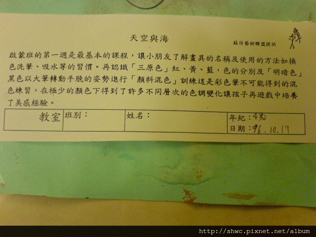 上面就寫了第一堂課的內容及主題,我覺得這樣很好!等到以後在看這幅作品的時候就可以理解。