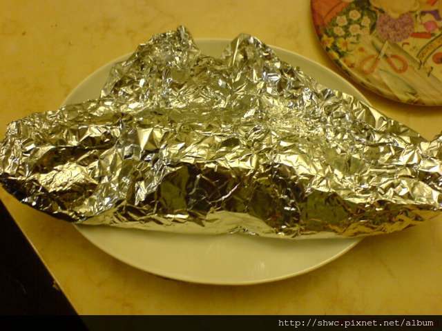 2.準備錫箔紙一張,裁切成可以包住魚的大小。