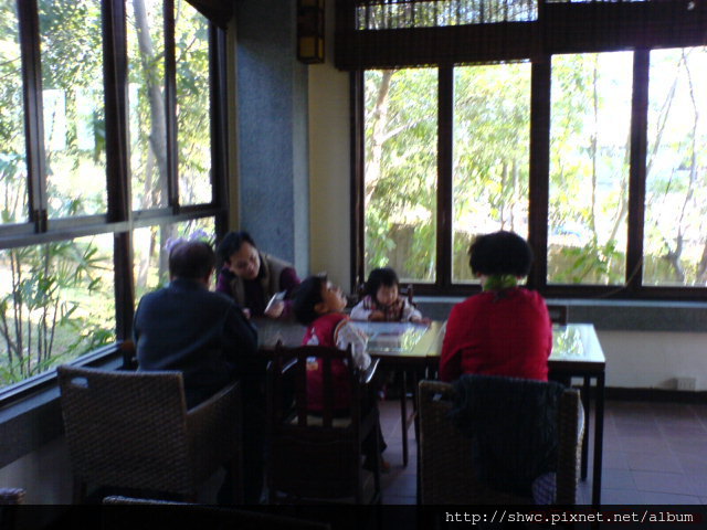 婆婆和老公陪兩個小朋友在農場走走看看,公公仔細研讀法鼓山的隨手書。