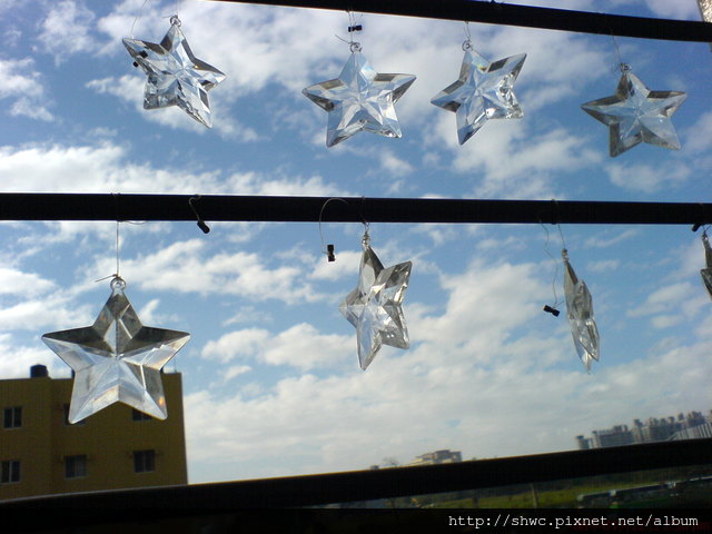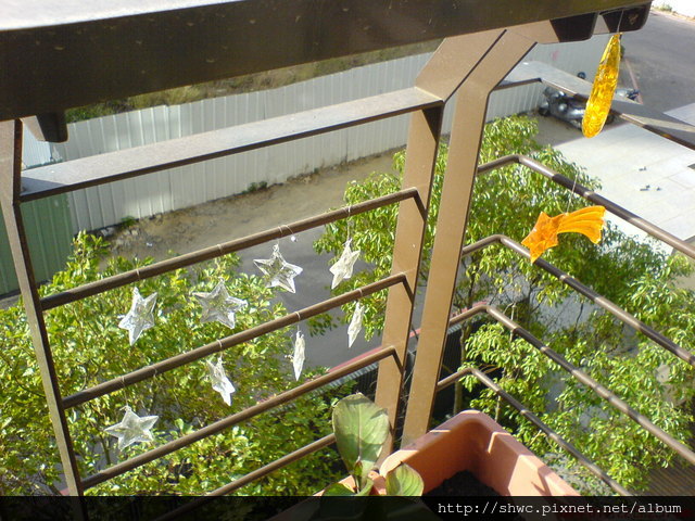 另外我將壞掉的IKEA風鈴分屍,將星星及月亮吊在陽台的欄杆上。
