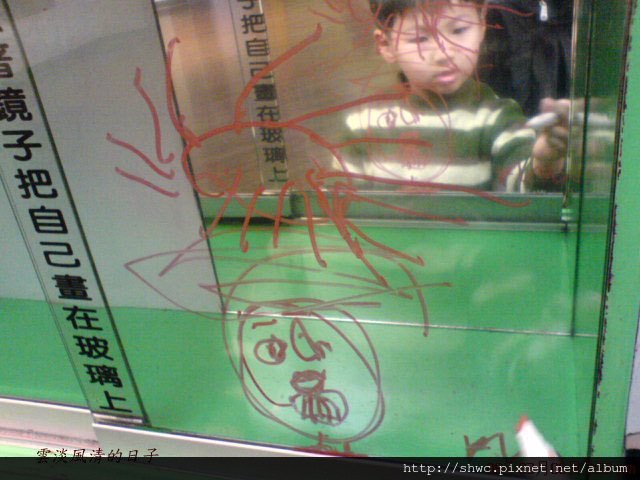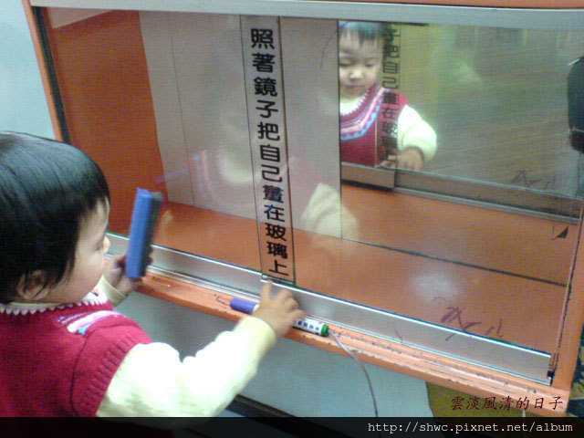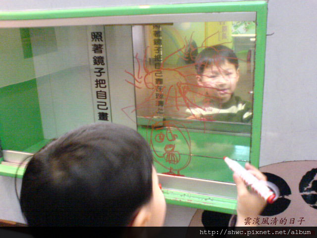 照片說明:互相畫對方的臉。小綠賣力畫哥哥。