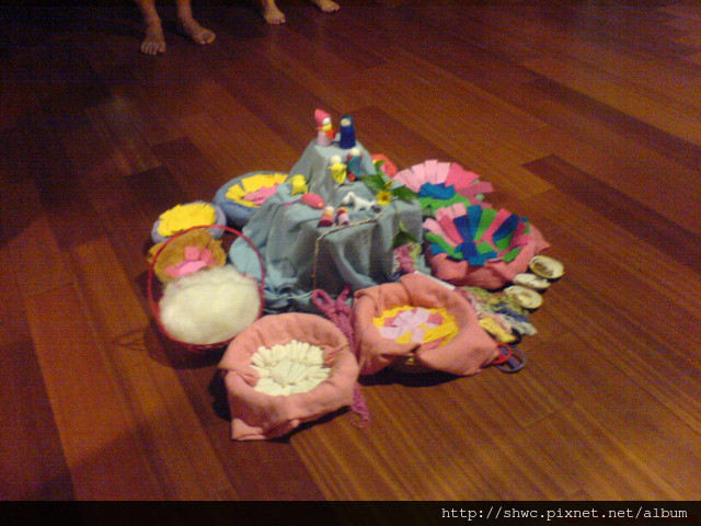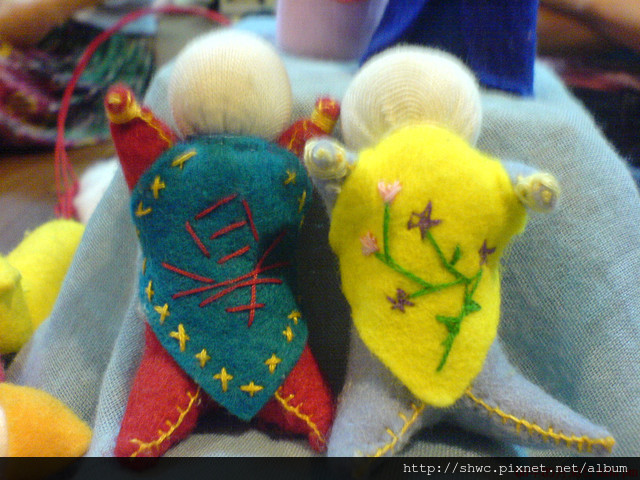 本來我還很雞婆地想要縫上手腳,結果老師說:香包不作手腳五官就希望幼稚園的孩子不要感受太現實的線條。這也是老師幾乎都穿裙子的原因。