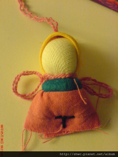 我只好在他的脖子上在纏上一條線,事後我將它改造成翅膀。