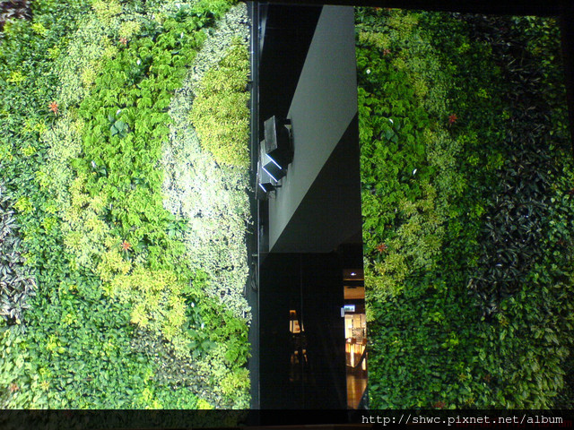 從B2到三樓的手扶梯,都可以見到這一整面植物構成的美麗裝飾牆。