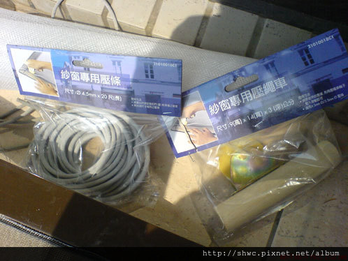 因此又買了紗窗用的壓條95元跟紗窗用的壓繩車65元。