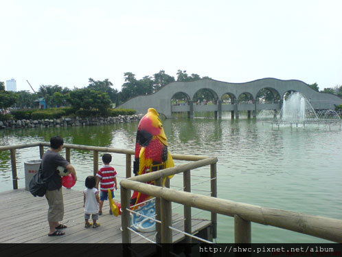 我們看約定的時間還早,就先帶兩個小朋友到草坪玩球,到水池餵魚,還玩滾球贏了兩個小獎品。