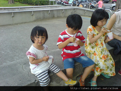 這次他們不止餵魚,吹泡泡,還騎旋轉木馬,丟圈圈,吃冰淇淋..。兩個小朋友都玩得捨不得睡覺跟回家,還一直說要再來玩。