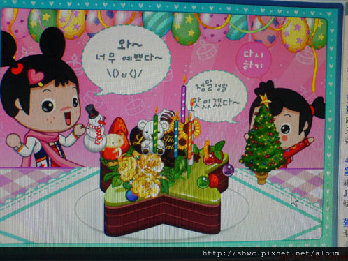 蛋糕全部作好之後,就按右下角小女孩頭上的粉紅色click按鈕就可以看到成果了!