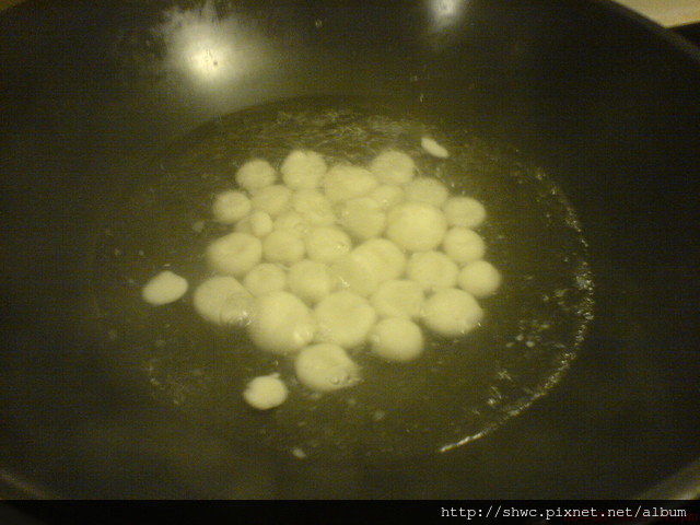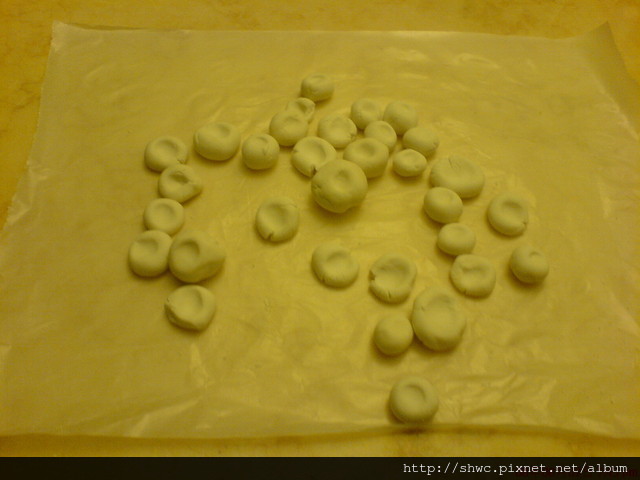 作法跟湯圓很像,只是搓好後要用大拇指壓出一個印子。