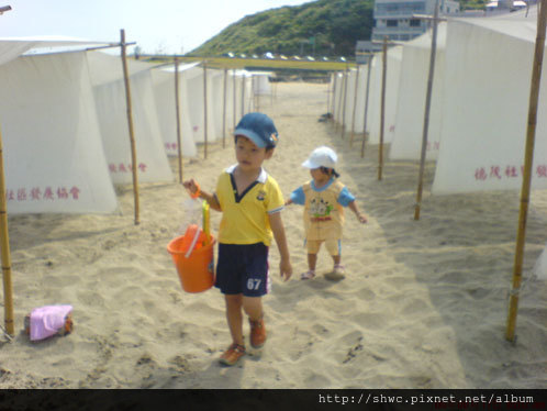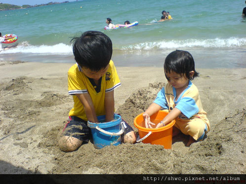 『親子一日遊(上)』北海岸:白砂灣泡水玩砂消暑去。