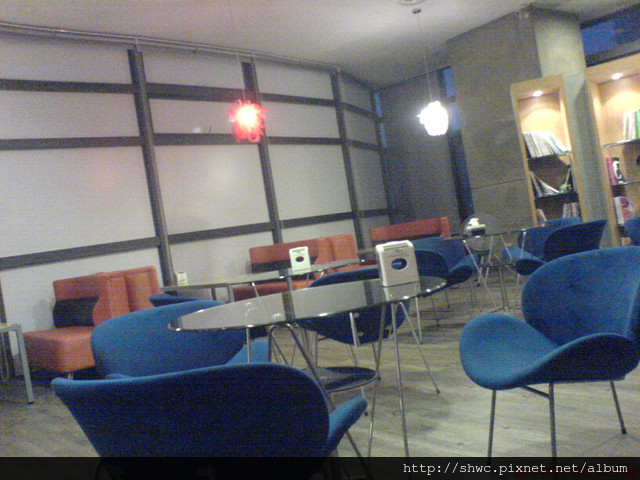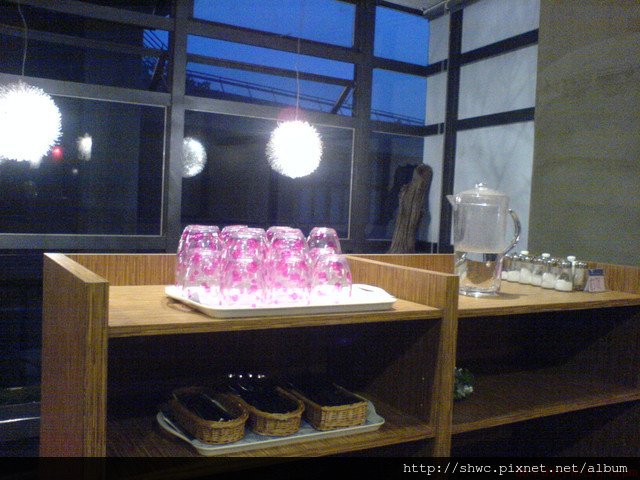 結完帳我們拿號碼牌往樓上走。樓上有書報雜誌的展示櫃,還有簡單的水跟餐具。