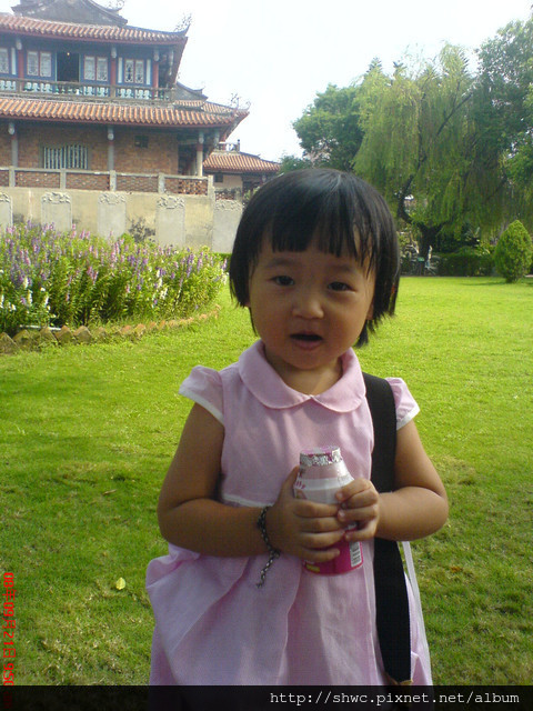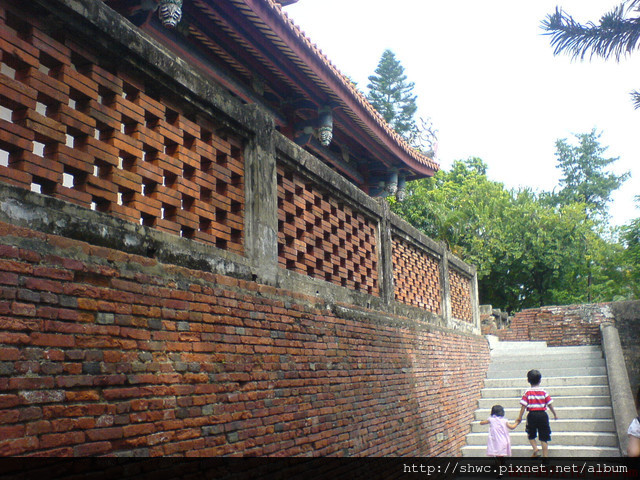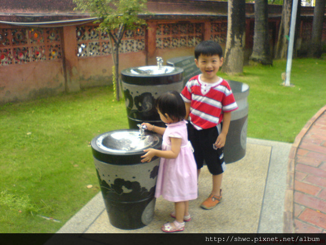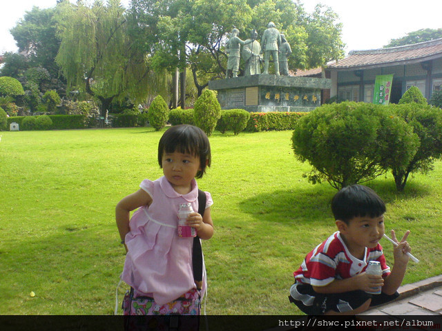 進園之後,兩個小朋友就開始跑跑跳跳,還爬到文昌廟二樓去拜拜。