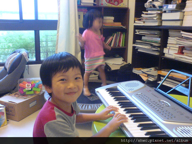 這時候就會覺得有兩個小孩比較有伴,他們一個彈琴,另一個就負責跳床。