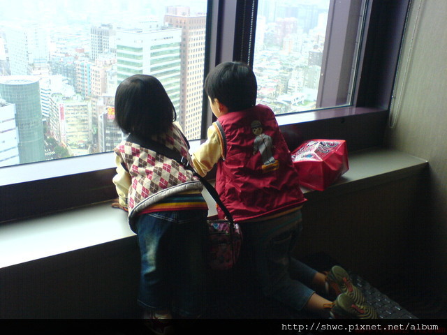 既然時間還早,我就讓他們在這邊玩。接待小姐過來告訴我們可以到旁邊的窗台休憩區看風景。
