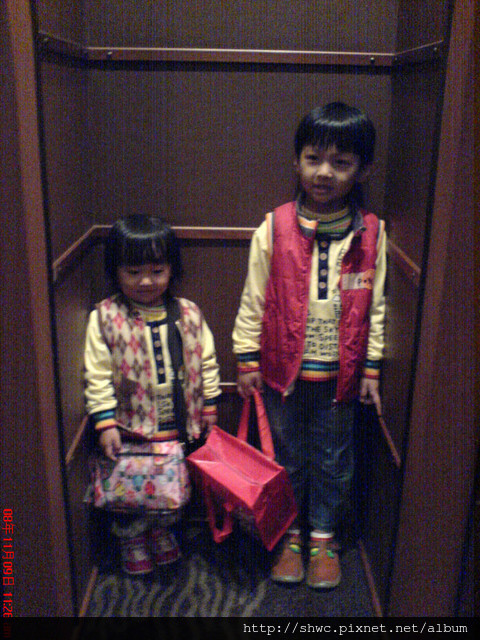 小朋友跑一跑之後也是很容易無聊的,就乾脆在電梯間玩躲貓貓。