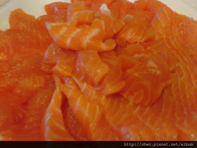 COSTO的鮭魚很新鮮,新鮮到當天買回家就可以做成生魚片來吃。