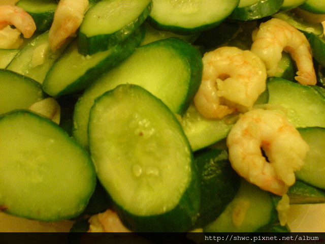照片說明:我將蝦子拿來炒小黃瓜,小朋友很愛。