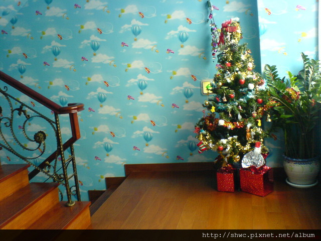 樓梯間貼滿藍色的小熊壁紙,感覺很有小朋友的感覺。