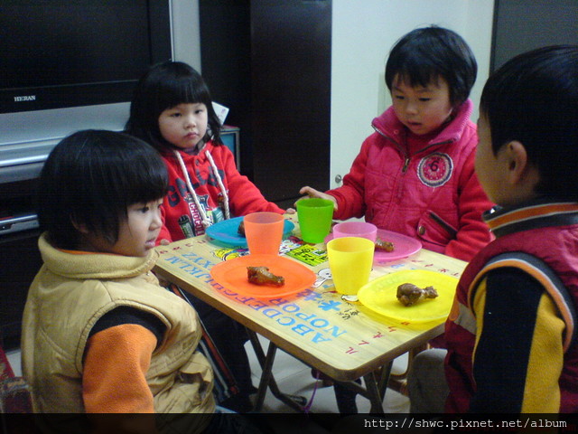 四個小朋友一起吃吃玩玩度過一個愉快的下午。