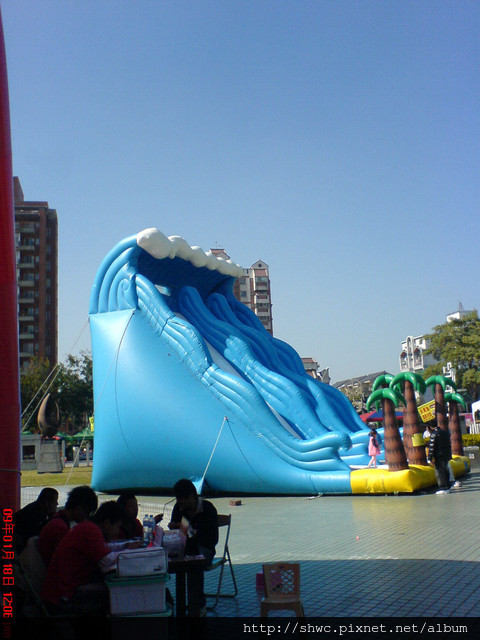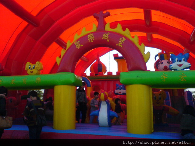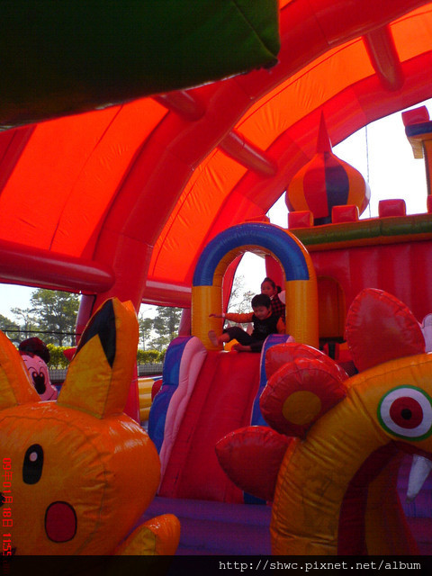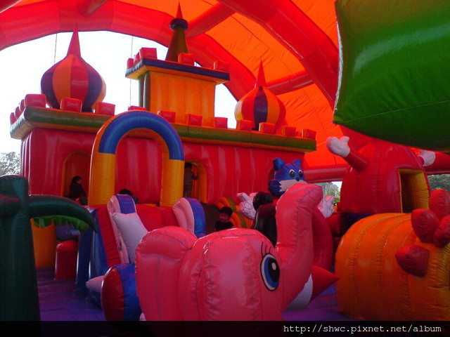 一百元可以玩一個小時的氣墊遊戲,有適合小小孩玩得,也有高達兩樓高的溜滑梯。