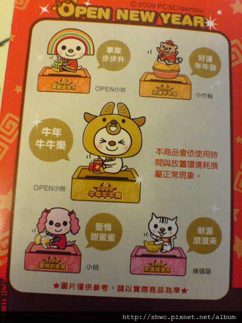 嘿嘿,今年金牛年有一隻牛年的OPEN小將也不錯!其他的也很可愛阿!我看一定又會造成一股收集熱潮。