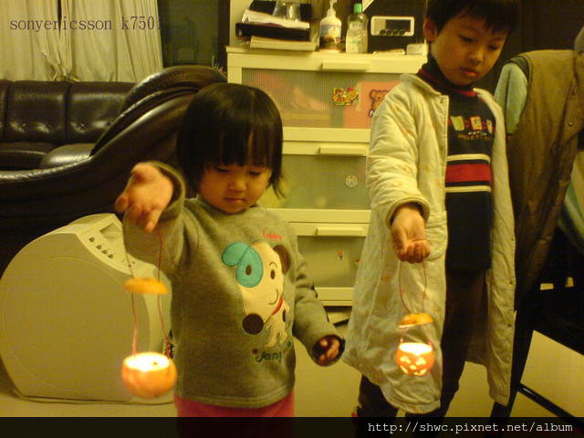 我自己則是想做兩個有笑臉的柳丁燈籠!哈哈!就合併吧!