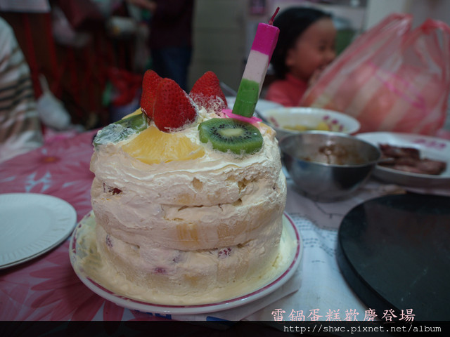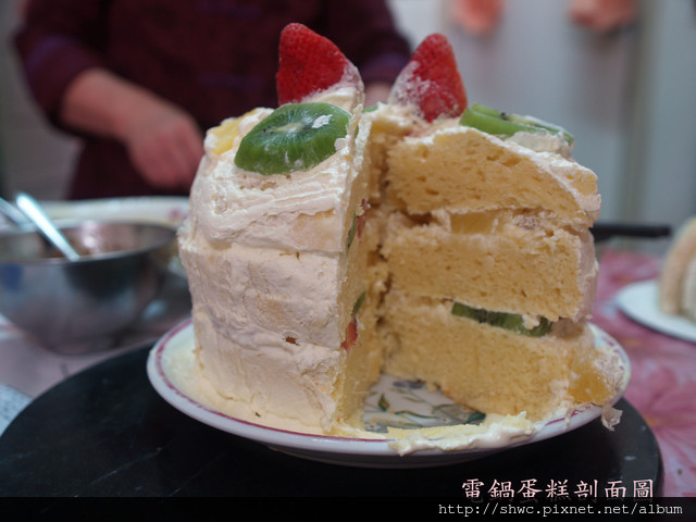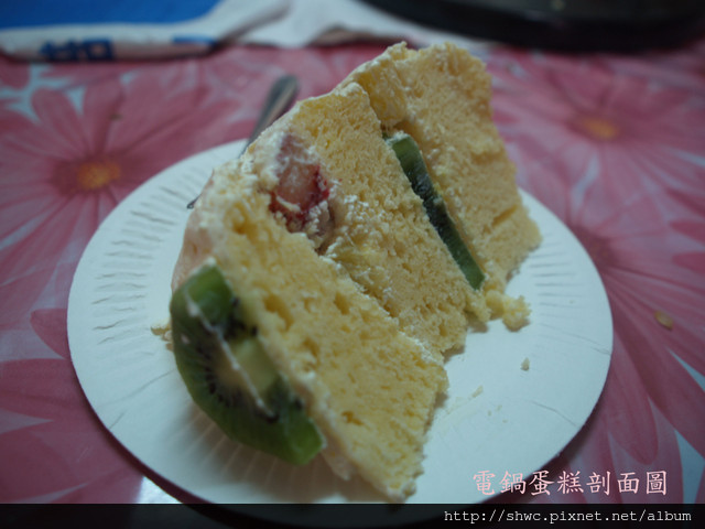 經過一個晚上的冰鎮,奶油真的比較硬了!所以勉強還看得到電鍋蛋糕的模樣。