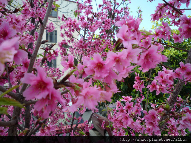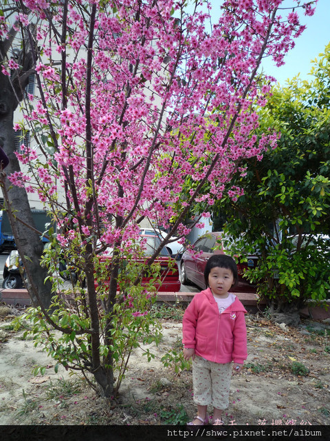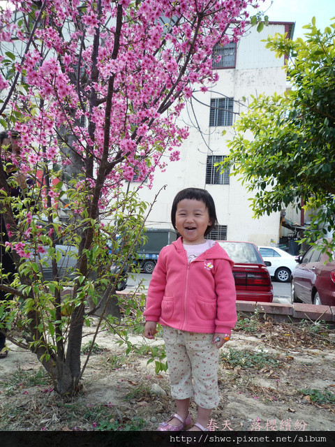 小綠請假的那天,我們夫妻帶著小綠重訪那棵超繽紛的櫻花樹。