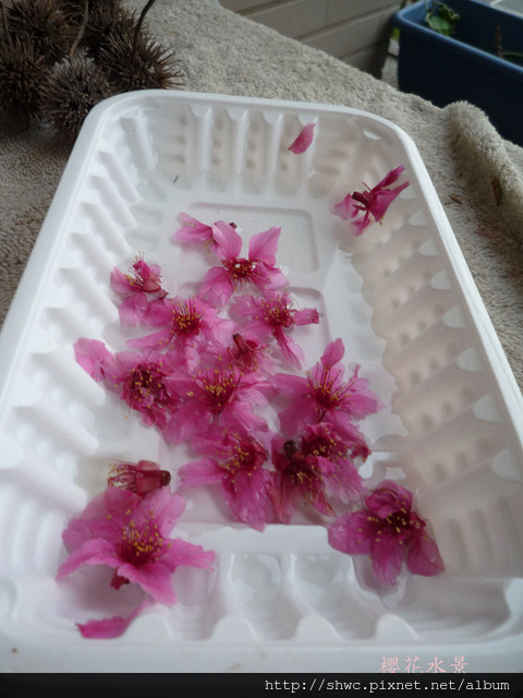 所以跟著媽媽撿拾了一些落下來的櫻花,放在頭上當櫻花公主。