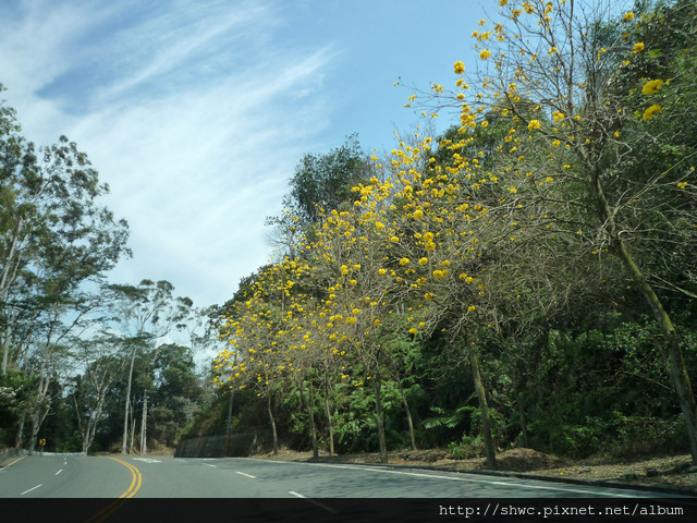 雖然櫻花早已凋謝,但是往南投的道路上,出現了另一個美麗嬌客:黃色風鈴木。
