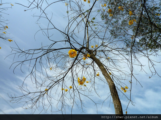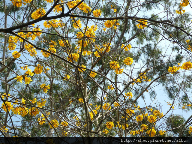 黃色的花朵在藍天下很是醒目,尤其又是行道樹!一大片的盛開很漂亮!