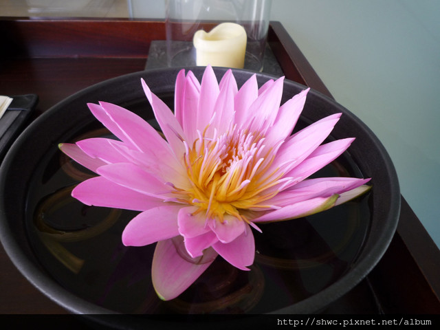 上次來還在整修的無邊界蓮花水池已經完工。水池上的蓮花會隨風勢水勢飄浮,其實他是把蓮花擺在盤上,下面有一條繩子。