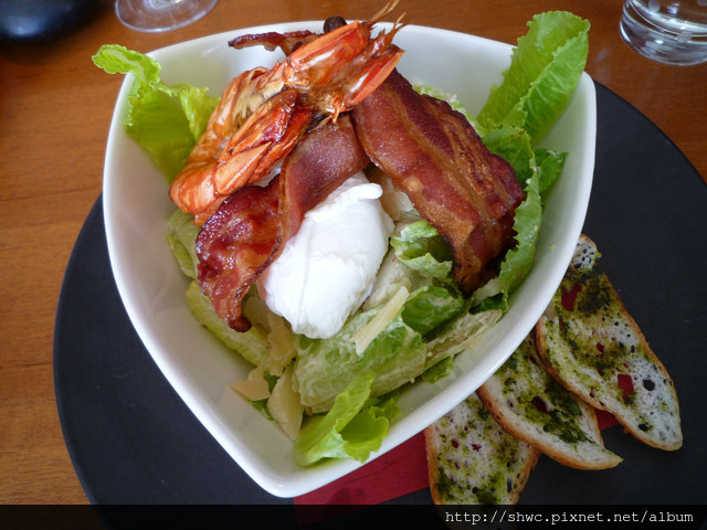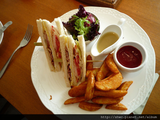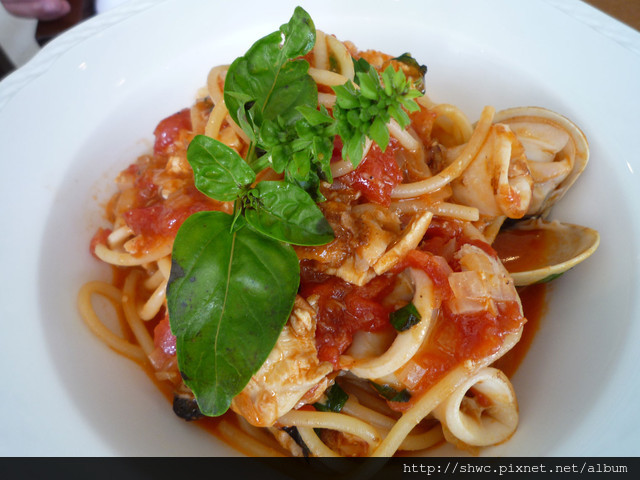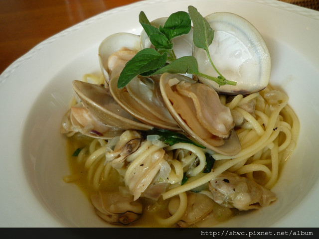 這次我們點的餐跟上次差不多。蛤蜊義大利麵、海鮮義大利麵、凱薩沙拉,還有總匯三明治。