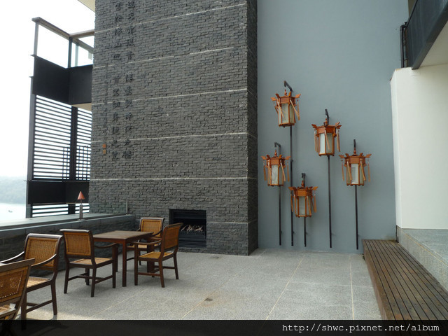 吃完飯,當然要到外面的陽台欣賞一下湖光山景。