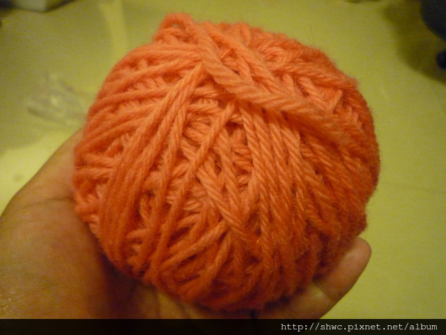 毛線球,我是在學校買的。我選了粉粉的橘色當我的第一個練習球。