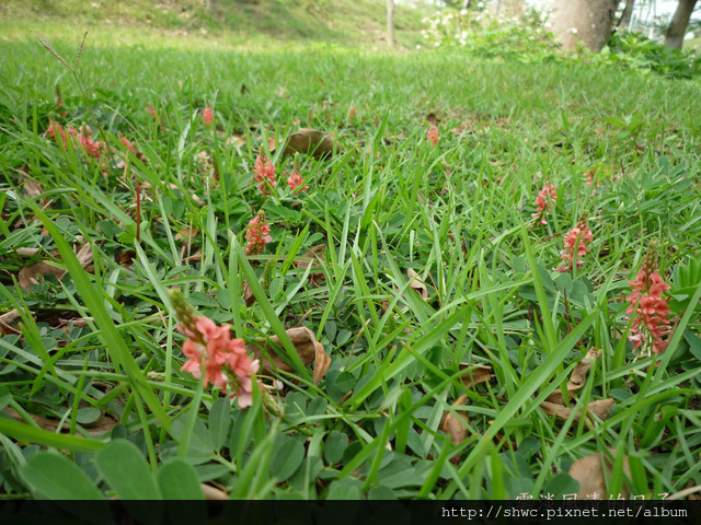 走著走著就發現路旁的草皮長著很多可愛的小紅花。