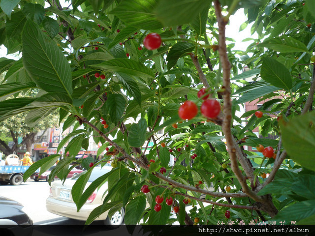 像是櫻花的小紅果,就一點都不好吃,吃起來酸酸苦苦的。