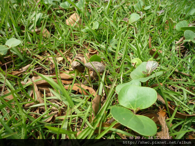 那天帶小夏逛公園的時候,在小葉欖仁樹下發現剛發芽的種子新芽。