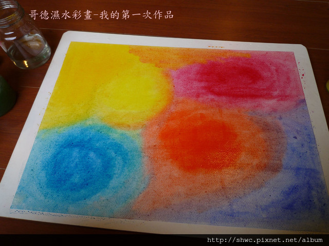 我看大家都很認真的畫阿!我大概太用力了,而且忘記要先保持距離再混色,所以色彩的界線很明顯!