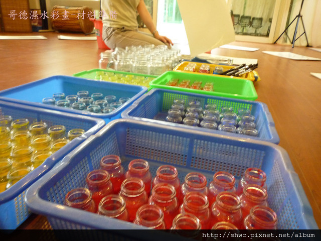 每位學員有一支水彩筆,一個供洗滌水的罐子,還有抹布跟四罐顏料。