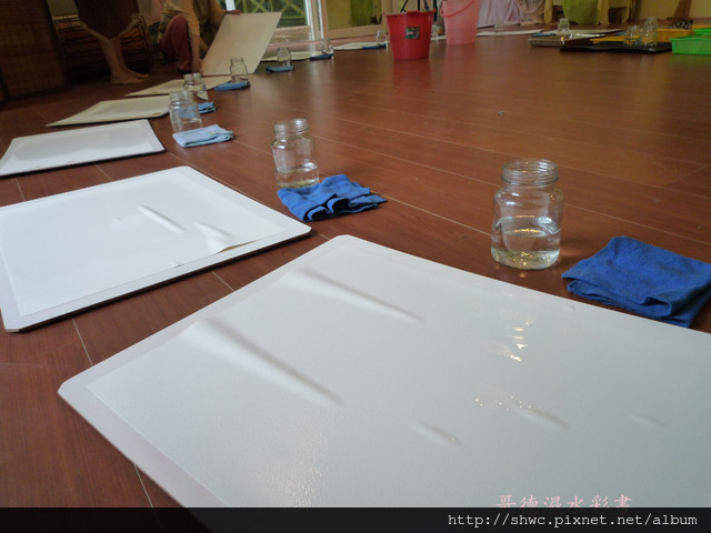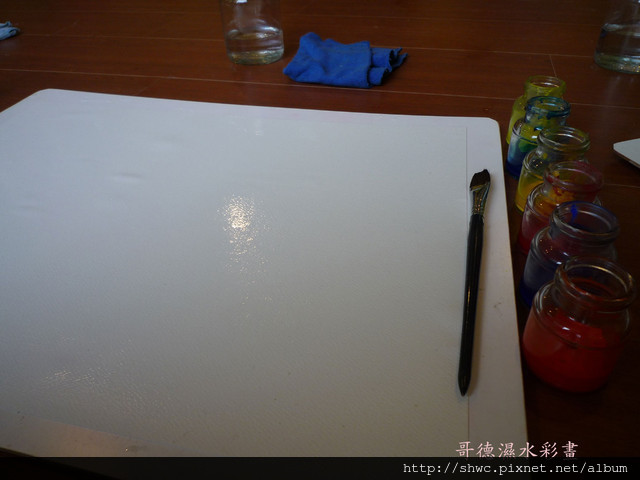 主要是把畫紙浸水,再放到畫板上。
