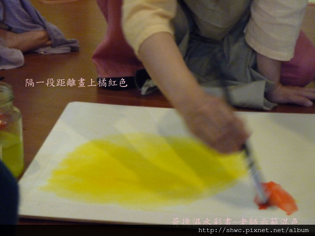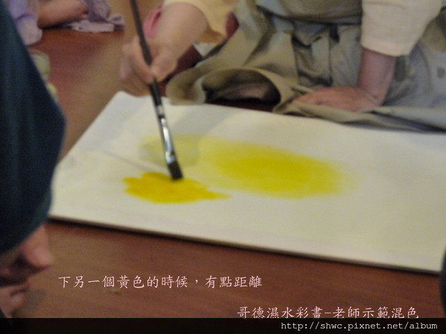 唱完歌老師開始示範怎麼混色,才會讓色彩比較協調而不會有明顯的界線?