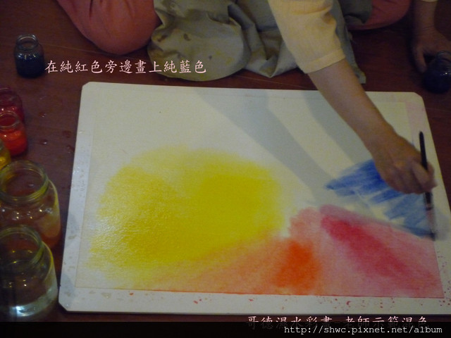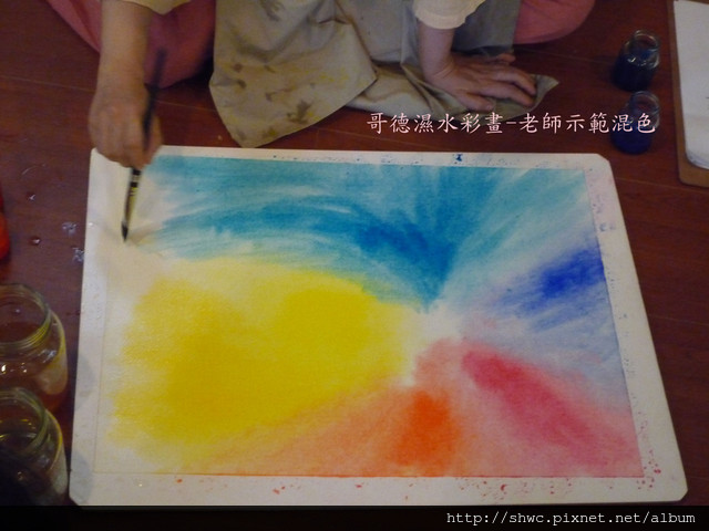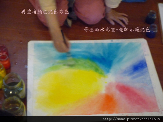 然後就是大家練習的時間,今天主要是練習混出彩虹般的顏色。