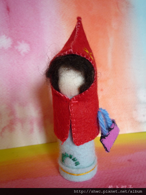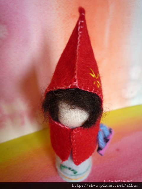 可是我想把帽子做成活動式的,所以我先將它的頭髮做好,又重做了一件帽子斗蓬。