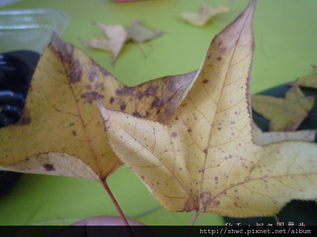 雖然我的手上拿著很重的東西,不過我還是忍不住拾了很多掉落地楓葉。