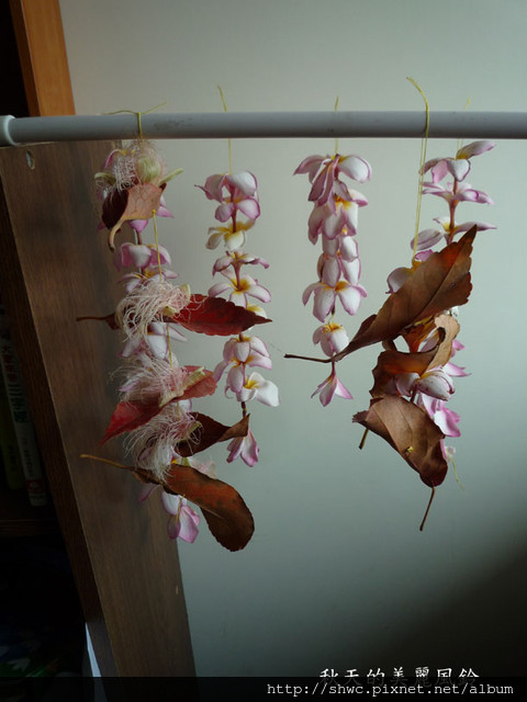 因此我們在地上收集了一些落葉跟花朵,一回家就開始動手做風鈴。