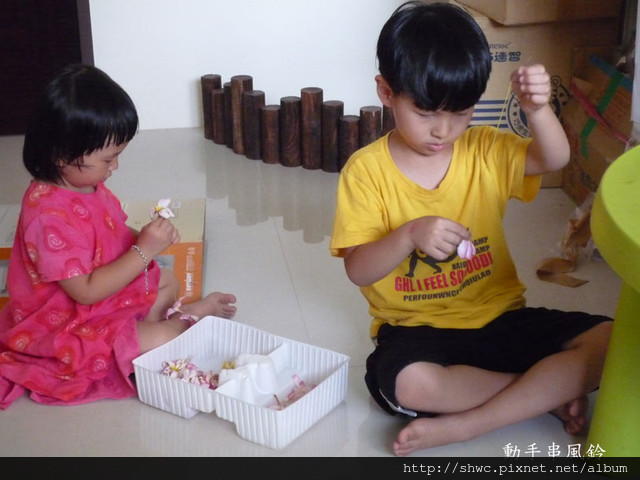 小夏說他要做風鈴!可能是受到我常常做雞蛋花風鈴的影響吧?