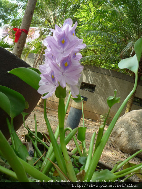 在前庭尋找秋天的黃,意外發現美麗的布袋蓮,在角落悄悄地綻放。